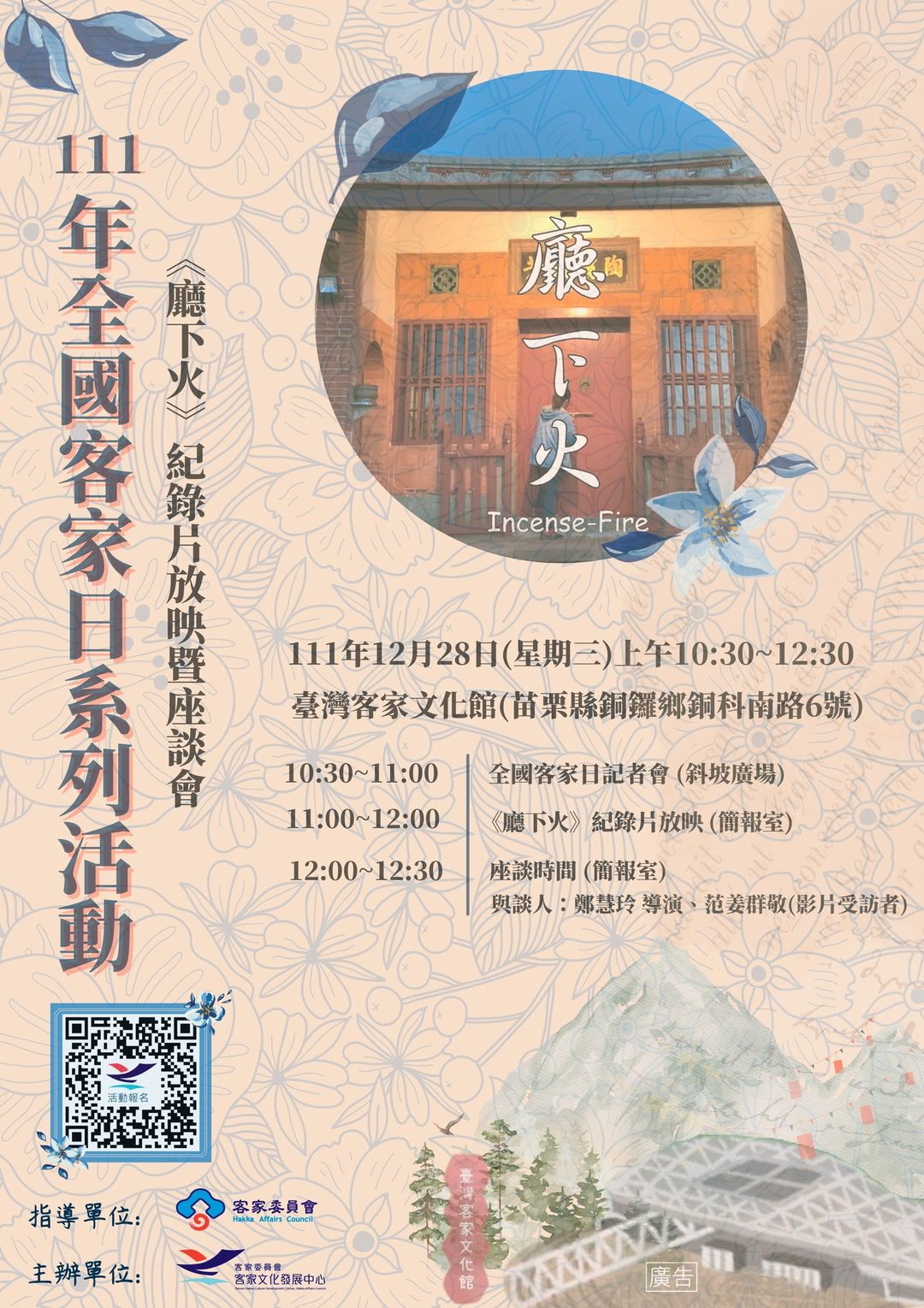❉ 活動地點:客家委員會客家文化發展中心 臺灣客家文化館 簡報室 (苗栗縣銅鑼鄉銅科南路6號)