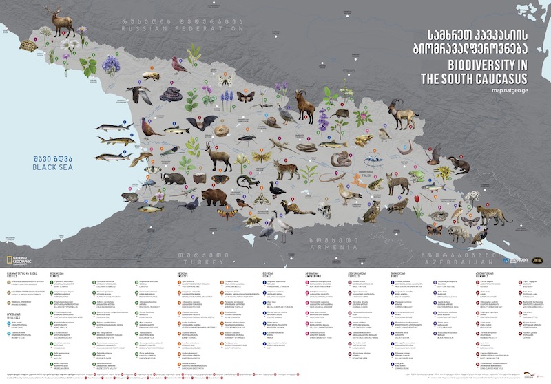 喬治亞國家地理雜誌、喬治亞國家博物館(Georgian National Museum),與伊利亞州立大學(Ilia State University)合作繪製首張南高加索地區(South Caucasus)生物多樣性的插圖式地圖,並於2019年9月發行了實體與數位兩種版本。該實體地圖不僅成為了博物館的展品,亦被分送至各學校單位成為學習教材;而數位地圖與相關線上教材,更在全球疫情期間,讓生物教育跨越地理阻隔與疆界,並免費授權教育目的之使用者下載,增加了其教育意義。喬治亞國家地理雜誌的總編輯Natia Khuluzauri援此科普媒體、博物館與大學共同合作的科學傳播案例,揭示博物館教育亦能成為愉悅的學習體驗。