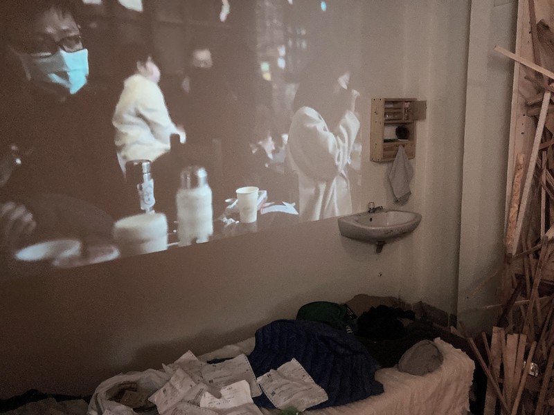 而在「日常 Everyday life」作品中,呈現微光盒子的非行少年〔註2〕,承受自家庭、學校、社會中刺耳的叫罵聲響,這是從他們有記憶以來即存在的熟悉聲音,其也一步步將自己推向邊緣。「日常畫面」則由芒草心邀請無家者們主動拍攝自身於街道、購物、社交等日常生活的畫面,諸如:從北門一路走到臺北車站的街景;到香香澡堂〔註3〕盥洗與用餐的日子;又或是喜愛熱鬧、有人陪的地方,而非一人獨處等。
