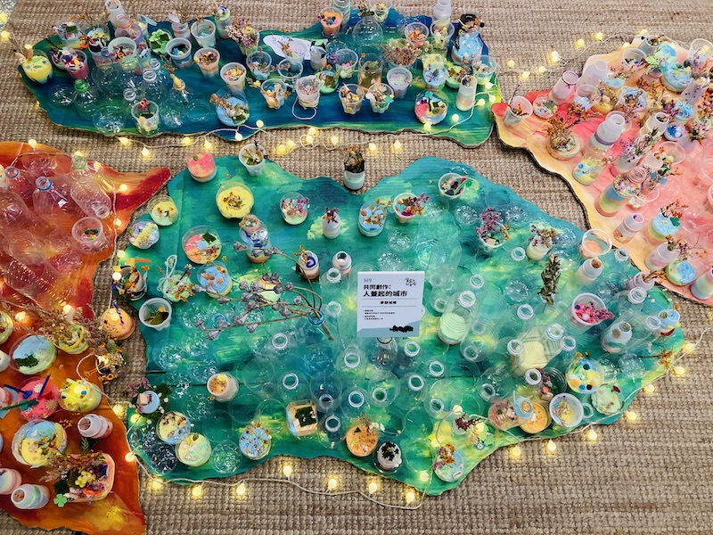 除了來自經驗者與組織的作品,展覽也試圖將觀眾納入其中,提供共同創作的參與機會,而不僅是單向觀看與聆聽。從「如果我有一座新冰箱」的居住困難議題討論中,在租屋場景布置及租客心聲分享的同時,提供代表不同收入區間而長短不一的棉線,讓觀眾在生活的諸多選擇中,企圖勾勒自身的理想狀態。「人蓋起的城市」則設置各種回收瓶罐、手作材料,邀請觀眾共同打造能容納多種聲音的城市、承接任何人的家。展覽也設置留言區,以數個提問引導,供觀眾分享自身感受與想法。