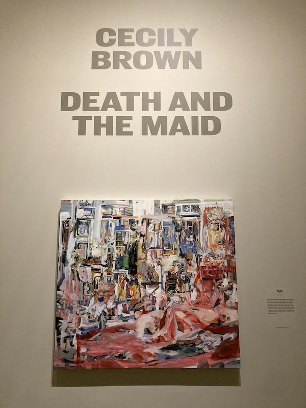 本次「死亡與少女」個展由大都會博物館現當代繪畫部門策展人Ian Alteveer策劃,展名作為文藝復興與浪漫主義時期經常出現的主題[註釋3],Cecily Brown卻將Maiden縮短為Maid,一方面是較為現代化;另一方面也回應藝術家過往從事家務清潔,以支付藝術學校學費的個人經歷。本次展出作品多啟迪自西方藝術史的經典之作,例如象徵死亡終將到來的靜物畫(memento mori,拉丁文的「勿忘你終有一死」;vanitas,虛空畫)、鏡像、死亡與少女等,絢爛色彩下暗指繁華終將落盡,死亡無可避免。