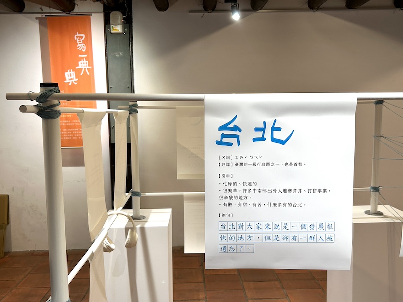 展覽分為五個主題。「寫一典典」展區以字典為概念出發,選擇與無家者議題相關、又能與大眾共鳴的字詞,讓哥姐們書寫自己的定義。藉由字詞不同的定義,理解哥姐們的生命經驗。以「家」這個字為例,不同於教育部審譯家為「親人共同生活的場所」,在展覽中可見,寫寫字工作坊引申的定義之一為「一個回不去的地方,很像是一場永遠打不贏的仗」。同時能透過參與工作坊哥姐們的訪談語音,聽到字詞與他們的連結。在「字裡人間」展區中,參觀者可以透過哥姐們的筆跡與想法,認識哥姐們「無家者」以外的個人特質,並以更多元且立體的角度去理解這個「人」。