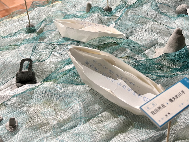 展覽也呈現寫寫字工作坊中多元的書寫形式,例如,「字由字在」展區展出以紙船、石頭以及黏土的創作,使哥姐們透過多元的媒材,書寫給家人、社工,甚至是曾遺失的行李。或是「其來有字」展區,呈現哥姐們的旅遊提案,以及製作過去一年代表字詞的手刻字橡皮章課程。透過種種活動發想,帶領哥姐們練習表達的途徑,也使參觀者理解哥姐們對於不同事物的想法。展覽尾聲「字由心證」,則邀請參觀者以便利貼分享,未來在面對無家者或是不同生命經驗的人時,自己所能採取的行動。