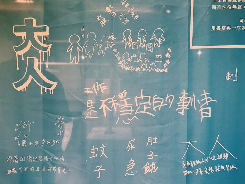 「大人的寫寫字」特展,為人生百味、與其參與寫寫字工作坊之無家者們共同策劃。展覽時間從2023年11月3日至2023年11月19日。(圖像由人生百味提供。)