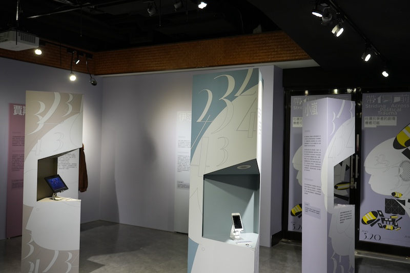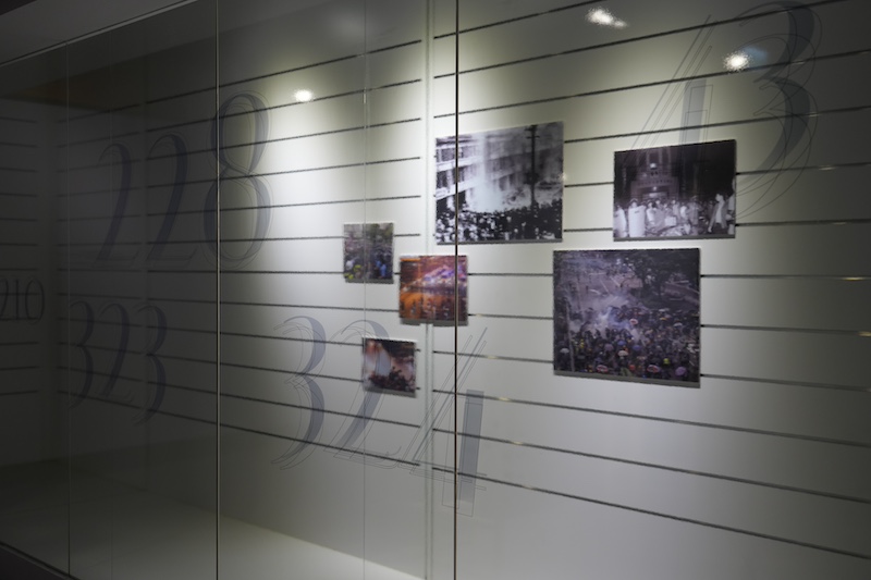 走入展場,可以看到展覽分為三個區塊,分別為「傷痕密碼」、「反叛的想像共同體」以及「再整合、再詮釋的療癒可能性」。「傷痕密碼」的展區將二二八、雨傘革命等國內外幾場著名的抗爭事件化約為數字與影像,半透明的展牆透出這些數字的連串組合,勾引出烙印在集體記憶中的國家暴力。