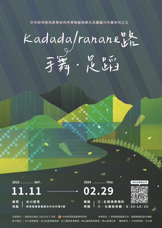 邁入第五屆的原住民族共作展在屏東霧台鄉「谷川部落」登場!展覽由中央研究院民族學研究所與霧台鄉各部落攜手策畫,霧台鄉文史工作者Peresange Sukinadrimi(貝若桑.甦給那笛米)、民族所林文玲研究員擔任策展人。展覽主題為「Kadadalranane 路.手舞.足蹈」(2023.11.11至2024.2.29),訴說發生在魯凱族「貿易之路」上的動人故事。
