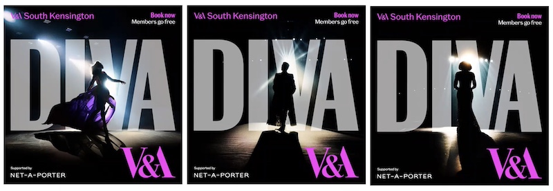 例如,DIVA特展設計三款主視覺海報,配合不同管道的宣傳,藉以吸引不同類型觀眾的目光。如皇家國家劇院外的廣告使用成熟女歌手的剪影海報,而英國暢銷的LGBTQ+《態度》雜誌(Attitude)則以成熟男性的剪影海報作為內頁宣傳。