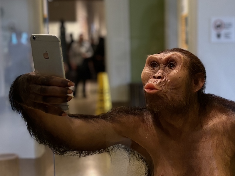 走進位於華盛頓的史密森尼國立自然史博物館(Smithsonian National Museum of Natural History ),可見阿法南方古猿「露西」拿著手機自拍的雕像突兀地站立於館內展區中,搭配展示牌「你會與誰分享自拍照呢?」藉此吸引觀眾前往參觀「手機:不可見的連結 」特展(Cellphone: Unseen Connections)展覽也透過數位裝置、流行圖像的運用,使觀眾透過互動探索的方式,深入了解手機科技的歷史演進,以及它對當代社會的深遠影響。