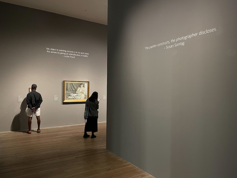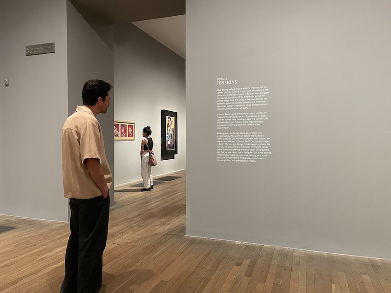 另一方面,展覽也透過揭開作品背後的創作故事,為觀眾講述繪畫與攝影如何改變藝術家們思考創作影像的路徑,例如,畫家培根為畫家弗洛伊德繪製肖像畫,已不再透過「人物寫生」作為創作的依據,而是利用「人物照片」反覆繪製;或是以教皇的照片進行創作,期望透過扭曲外表等方式轉化人物形象,並藉此表達人類複雜的心理狀態。