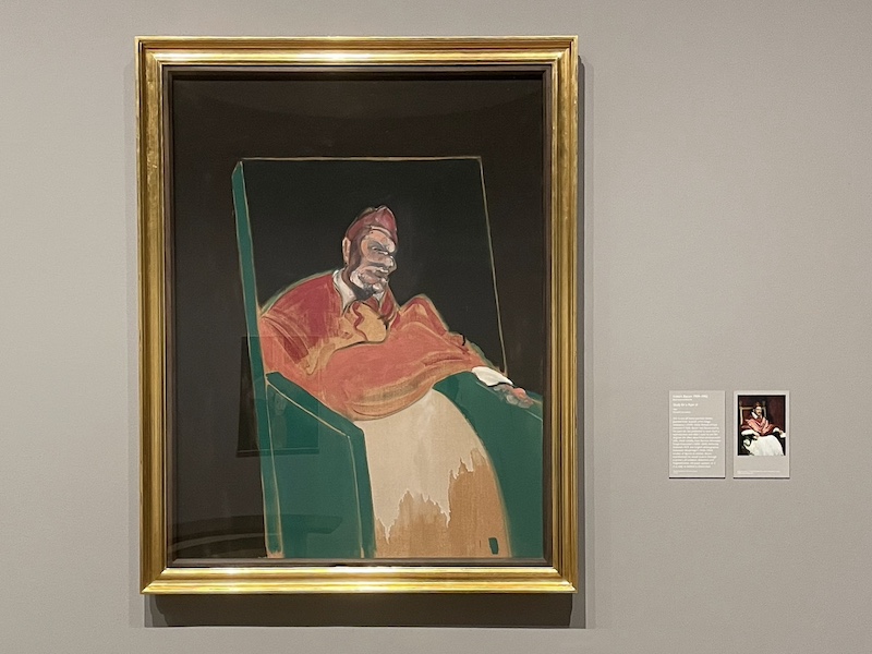 畫家培根時常參考攝影視角進行創作,例如作品《肖像六》(Study For A Pope VI)呈現有別於傳統油畫肖像的風格。(梁晋維 攝影)