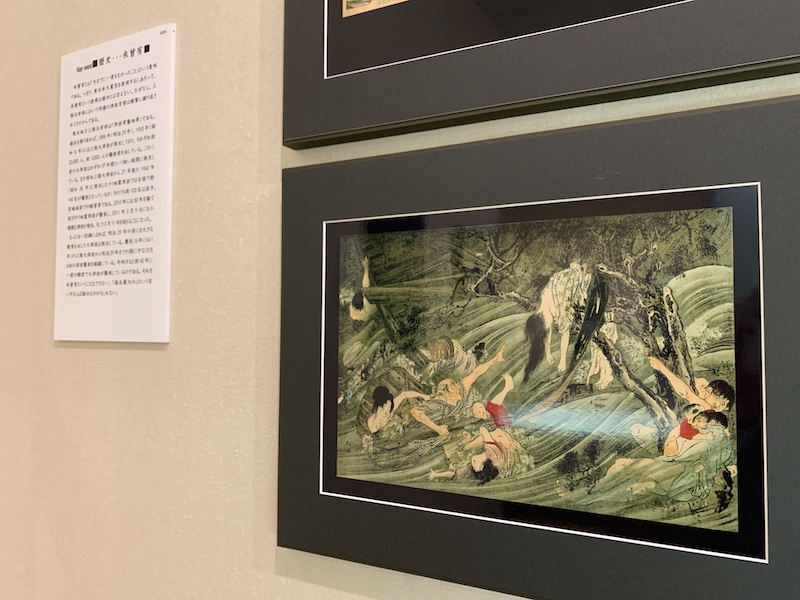 此外,展覽透過回顧該地區與海嘯相關的圖文歷史資料,將災難議題不只歸因於自然因素,或是新聞報導中常見的「意外」、「史無前例」論述,而是更進一步反思自然與人類活動之間的關係。例如透過爬梳史料,可見三陸沿岸地區平均每40年便會發生一次海嘯,同時氣仙沼市遭海嘯侵襲的地區,皆為戰後隨經濟發展人為開發的土地。展覽中藉由回顧史料,提醒人們從中記取教訓並防範未然,而非將災害事視為突發的單一事件,並積極思考未來防範與改善的可能性。