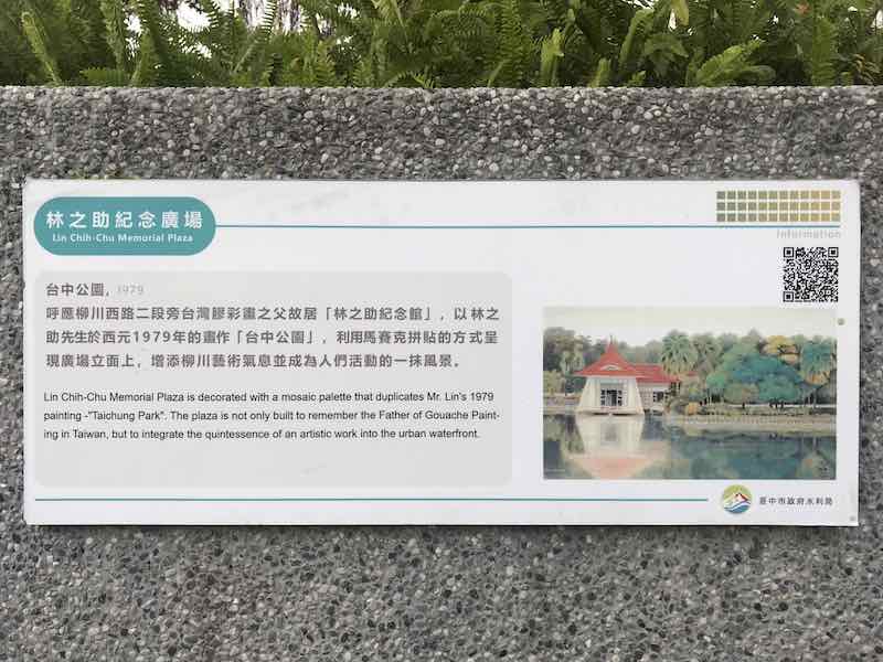 另一方面,畫作不僅作為創作者的「另一張面目」,更具有別樣的歷史意義。林之助曾描繪早期蓋在柳川之上的老屋,為見證台中都市發展變遷的珍貴紀錄。如今紀念館對面的老榕樹下,設有一個林之助紀念廣場小牌,觀眾可以掃描上面的QR碼,重現林之助1979年的畫作〈臺中公園〉。
