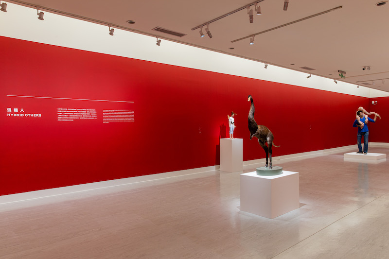 特展以「混種人」揭開序章,走入展間,藝術家Thomas Grünfeld以複數動物拼湊而成的標本作品〈錯合(天鵝/海狸鼠/驢子〉十分搶眼,其後Sam Jinks的作品〈犬頭〉更是引人注目,許多觀眾紛紛圍繞作品、以手機拍攝,呈現一種宛如獻祭的獨特氛圍。藝術家創造的變種人類,反映了從早期歐洲珍奇櫃(Cabinet of curiosities)到現代博物館蒐藏,人類和非我物種的長期矛盾關係,是獵奇、陌生的凝視,也是崇拜與關懷的渴望。