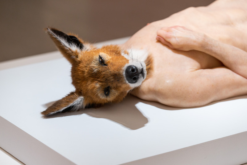 特展以「混種人」揭開序章,走入展間,藝術家Thomas Grünfeld以複數動物拼湊而成的標本作品〈錯合(天鵝/海狸鼠/驢子〉十分搶眼,其後Sam Jinks的作品〈犬頭〉更是引人注目,許多觀眾紛紛圍繞作品、以手機拍攝,呈現一種宛如獻祭的獨特氛圍。藝術家創造的變種人類,反映了從早期歐洲珍奇櫃(Cabinet of curiosities)到現代博物館蒐藏,人類和非我物種的長期矛盾關係,是獵奇、陌生的凝視,也是崇拜與關懷的渴望。