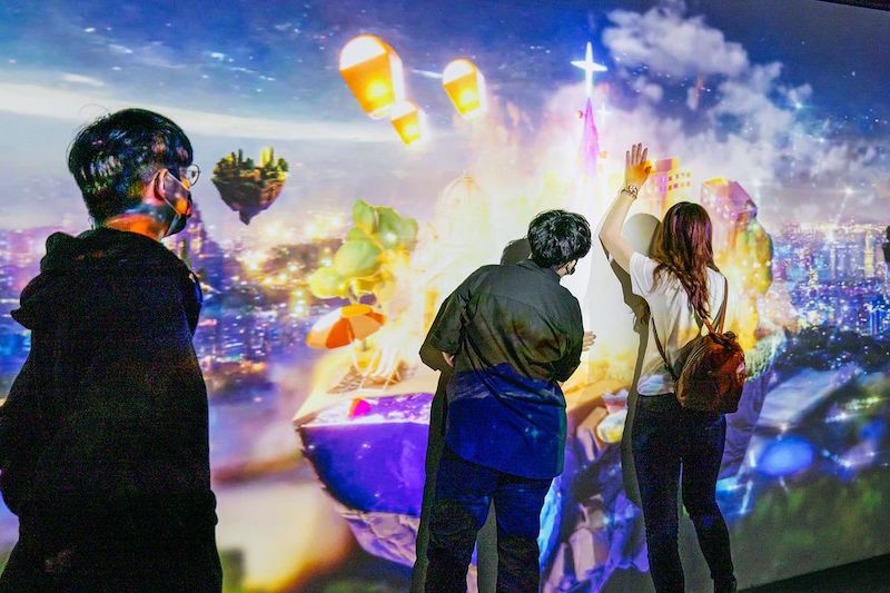 圓頂藝術空間的「新朋友New Friends」展覽,則強調沉浸式的多感官體驗。如揉合藝術與科技的作品〈ID〉,觀眾可將繪製作品掃描,上傳至由新北市特色地景與觀眾創作共築而成的虛擬投影城市,並與之產生互動。