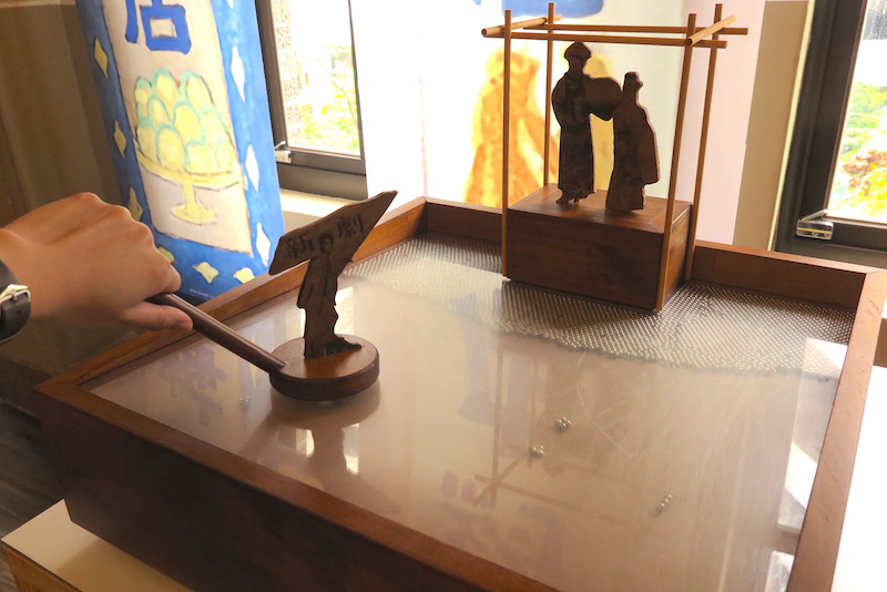 當新劇遇上舊劇,誰的「吸粉力」較強?第二展間闡述作為劇團演出匯聚地的大稻埕,以及新/舊劇間的衝突。新劇雖以啟蒙大眾、推翻舊文化為目的,然而娛樂性終究敵不過歌仔戲等舊劇。此區特別設計「吸粉力裝置」,觀眾可移動代表新劇的磁力握柄,嘗試吸引木箱內代表看戲觀眾的鋼珠,然而傾斜的木箱,使大部分鋼珠仍會回流至箱子底部的舊劇舞臺,以簡易手動裝置讓觀眾感受新劇難以親近庶民的無力感。