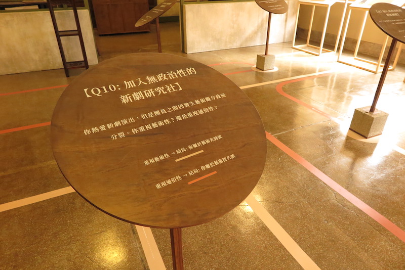 認識各劇團與劇本後,你覺得自己適合進入哪個劇團呢?第四展間設計為大地遊戲,以劇團成員信念形成的多樣派別為主題,觀眾將化身完成基礎教育的少年,面對新文化運動浪潮,步步選擇自己的人生,最終找到與自身理念相似的劇團。