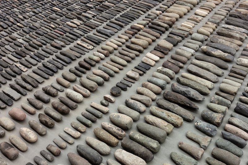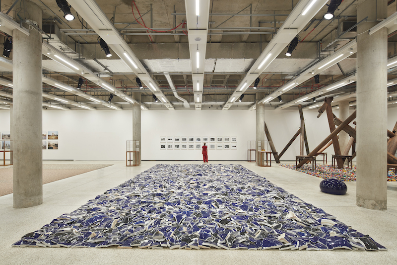 展覽另一亮點是被艾未未稱作「田野(fields)」的五件大型作品。其中,〈靜物(Still Life)〉是一件匯集4000件石器時代晚期工具的裝置,這批斧頭、鑿子、刀具和紡車被展示在展廳地面,呈現一個被遺忘的專業領域,提醒人們設計的起源植根於基本的生存。〈左右工作室材料(Left Right Studio Material)〉則來自藝術家北京「左右工作室」於2018年被迫拆除時,所留下來的瓷雕殘骸,這些遺骸呈現中國政府的大手如何介入自由之身,也證明艾未未將解構物再組、構成藝術的能力。其他三件裝置分別為〈噴管(Spouts)〉,〈無題(瓷球)(Untitled (Porcelain Balls))〉,〈無題(樂高事件)(Untitled (Lego Incident))〉,皆是藝術家自1990年代收集而來的物件,藝術家邀請觀眾漫步一片片物件堆積的「田野」中,探索物質文化的意義、手作與機器製造、珍貴與無價值、建設與破壞之間的多層關係。
