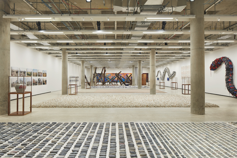 展覽另一亮點是被艾未未稱作「田野(fields)」的五件大型作品。其中,〈靜物(Still Life)〉是一件匯集4000件石器時代晚期工具的裝置,這批斧頭、鑿子、刀具和紡車被展示在展廳地面,呈現一個被遺忘的專業領域,提醒人們設計的起源植根於基本的生存。〈左右工作室材料(Left Right Studio Material)〉則來自藝術家北京「左右工作室」於2018年被迫拆除時,所留下來的瓷雕殘骸,這些遺骸呈現中國政府的大手如何介入自由之身,也證明艾未未將解構物再組、構成藝術的能力。其他三件裝置分別為〈噴管(Spouts)〉,〈無題(瓷球)(Untitled (Porcelain Balls))〉,〈無題(樂高事件)(Untitled (Lego Incident))〉,皆是藝術家自1990年代收集而來的物件,藝術家邀請觀眾漫步一片片物件堆積的「田野」中,探索物質文化的意義、手作與機器製造、珍貴與無價值、建設與破壞之間的多層關係。