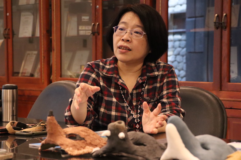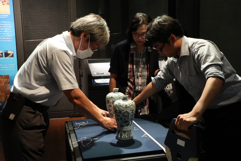 對於文物的展示,西都原考古博物館花費很長時間思考,且使用許多小道具來輔佐擺設。此外,她也觀察到日方館員以雙手持拿古物,和我們以手套來碰觸古物不同,針對此點,日方說明:「如果多了一層布,會增加古物滑落的風險,且手套有時會有脫線,如果勾到古物的裂縫反而會造成古物摔落。」這些展示、持拿文物的方式,皆值得我方參考。