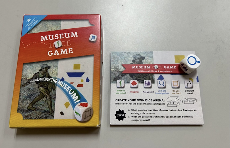 博物館為4歲以上的親子觀眾設計這套別出心裁的骰子遊戲,內容包括遊戲盒、骰子與提問單。遊戲未設定任何既定的遊程或展件,各項問答也沒有固定答案,親子觀眾可在任一展廳,丟擲骰子在遊戲盒內,由骰子擲出的面向決定提問類型,再參照提問單的問題選項,自由地進行展廳內的問答遊戲。