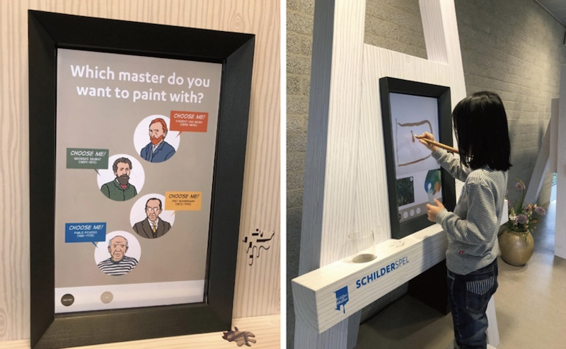 博物館還設置了數位畫架,以「你想跟哪位大師一起畫畫?」為主題,引導兒童觀眾認識梵谷、秀拉、蒙德里安,以及畢卡索四位畫家的繪畫技法,並透過數位操作應用筆觸、搭配色彩、組合元素等,創造出自己的作品,最後還可寄出電子郵件留存或分享。