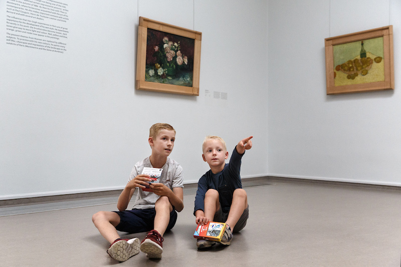 博物館還設置了數位畫架,以「你想跟哪位大師一起畫畫?」為主題,引導兒童觀眾認識梵谷、秀拉、蒙德里安,以及畢卡索四位畫家的繪畫技法,並透過數位操作應用筆觸、搭配色彩、組合元素等,創造出自己的作品,最後還可寄出電子郵件留存或分享。