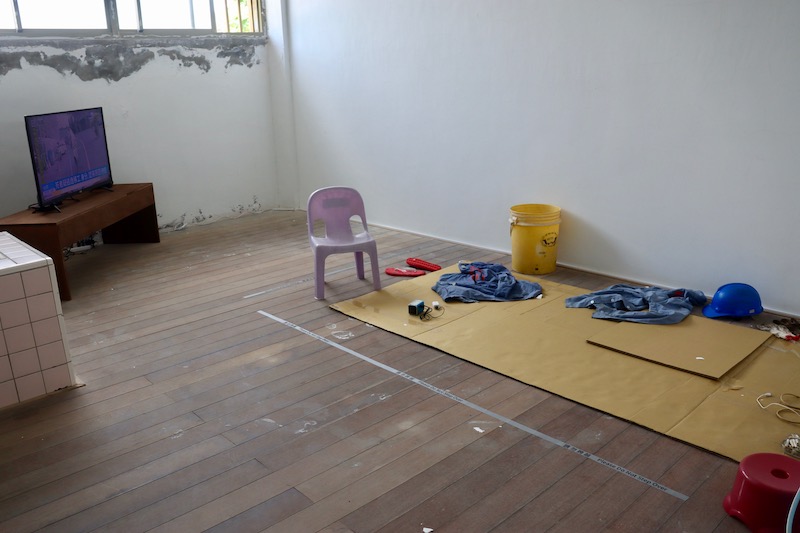 當代人權議題始終是綠島人權藝術季的核心之一,鄭庾陞作品《黃金洞女子們》探討韓國光州民主化運動中,為抗議者提供支援的女性性工作者,她們因為職業而被消匿的聲音,如何透過作品吶喊?普世的人權議題又如何在當代持續發酵和迴響?阮金紅、蔡崇隆與史旻玠共同創作的《歷史的裂縫—移工在綠島》,則在監禁房中建構外籍看護及工廠移工的「日常生活」,那雙於房門入口警衛監視玻璃小窗的眼睛,代表持續監管的無形壓力,揭露移工難以獲得的個人休息時間與隱私空間;而牆上以孔洞鑿出的透明人形,更彷彿雖然融入臺灣各處、卻不被重視的移工縮影,搭配「移工如何受傷的?」、「移工職災類型統計」等資訊展板,促使觀眾反思臺灣當前的移工人權,仍有努力空間。