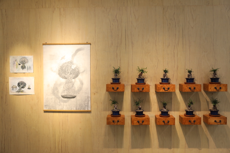 獨居房是由三側建築連起的展區,中間有一庭園,在庭院底端的牆壁畫著連續且主幹扭轉的樹木,蔡宛潔以此為靈感,透過根莖扭曲的盆栽隱喻曾在此生活的新生前輩。拉開盆栽下方的抽屜,則為前輩們一篇篇包含苦難、祈禱和振奮宣言的短句:「假使將來我知道你已有了快樂的新家庭,過著幸福的生活,那時我是多麼的喜慰啊」,這些刻入木盒的願望令觀眾動容,也具體顯示受難者家屬雖在監獄之外,但他們的傷口也像揮之不去的魅影。