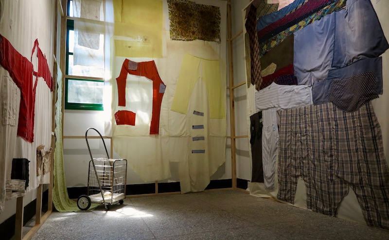 郭俞平則搜集許多衣物,將其分割、重新縫補成新作,分散在獨居房不同展間,暗喻著受難者女性家屬撐起家的堅強與柔性抵抗。