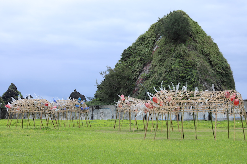 菲律賓參展藝術家利羅伊.紐(Leeroy NEW)作品《描籠涯船/描籠涯(船/村莊)》,使用廢棄塑料打造船隻,表示塑膠製造業、商品已遍佈全球並巨大影響著地球環境。2023綠島人權藝術季除了延續關注白恐歷史外,也擴及許多當代社會議題,使其成為容納更多元聲音的藝術季。(均勻製作 提供)
