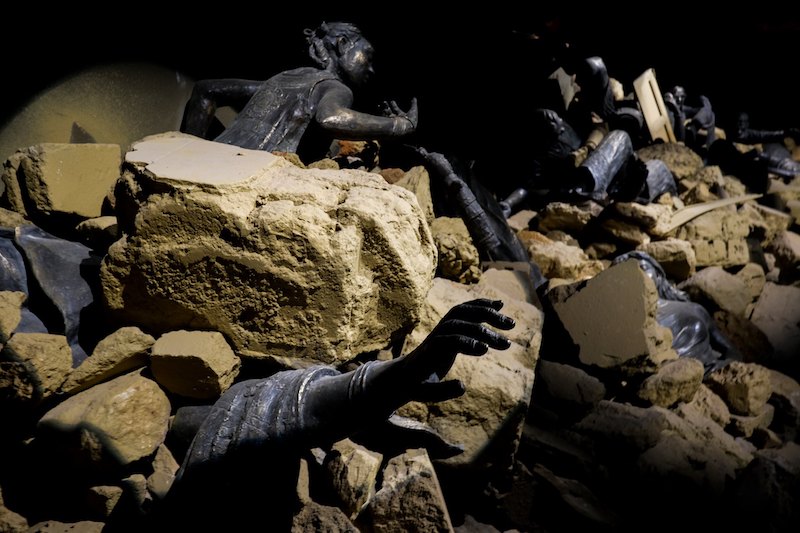 在展示層面,博物館善用場景還原,讓觀眾更容易進入情境。如主題三「還原」展廳,使用1比1的比例復原斷垣殘壁場景,真實重現地震造成的災害與創傷,包含來不及逃難的人群如何被掩埋、以及渴望被拯救的肢體語言與臉部表情。同時搭配動畫方式,呈現救災人員如何使用儀器探勘生命、進行大規模救援。