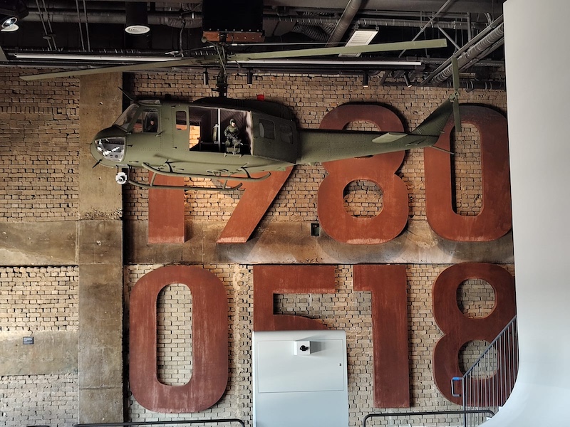 例如,在巨型螢幕投影室中,館方以3D投影模擬軍用直升機從遠處對建築物發動攻擊的場景,畫面中士兵們以M16步槍掃射,子彈直接飛向觀者,彷彿置身於火線中。儘管聽起來十分觸目驚心,但模擬的目的並非單純為了營造恐怖體驗,更重要的是,引導各個年齡層的觀眾反思不人道的過去。