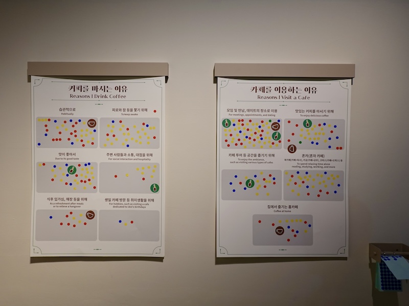 展覽尾聲,館方邀請觀眾以貼紙票選喝咖啡及前往咖啡館的原因,觀眾多表示因習慣而喝咖啡、為了和人們相聚而來到咖啡館。如同展覽結語「咖啡的意義不那麼輕巧,也不顯得沉重,也許這就是我們喝咖啡的原因。」