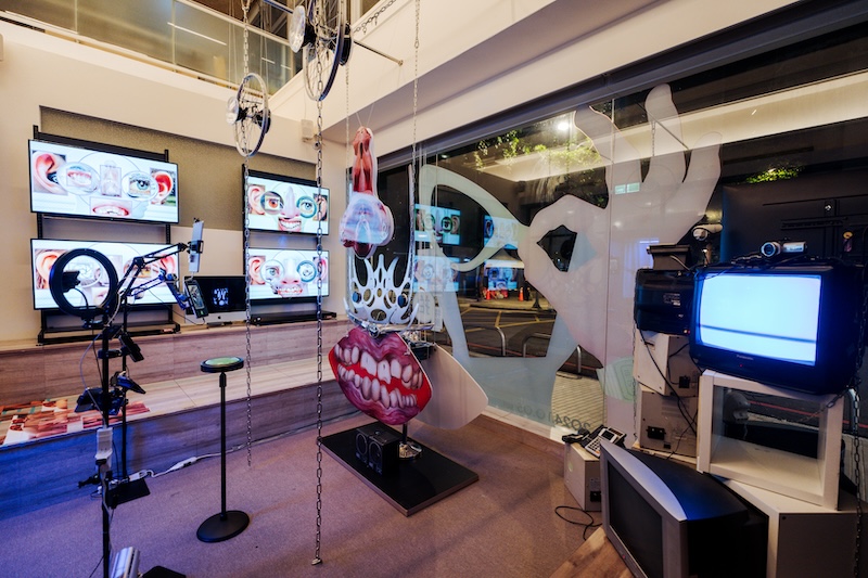 其中,跨界藝術家/設計師江奕勳透過虛擬實境遊戲《AC WORLD》,打造繽紛的虛幻城市,邀請觀眾進入遊戲,透過不斷的蒐集寶物獲得追蹤者與按讚數,反映當今虛擬社群平台的互動現象。然而,在這些由影像創造的絢爛表象下,我們究竟獲得了什麼?也值得進一步反思。