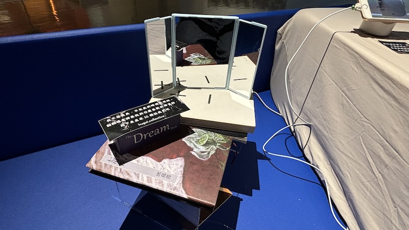 展區中央佇立一座大型高低錯落的樓梯與櫃體建築裝置,一端由藝術團體互跪合作社以作品《他們要我完美在線》展開,將生活場景帶進展場空間,邀觀眾以坐、趴或躺的姿勢觀賞,透過不是那麼正規、甚至帶有一點壓迫的視角,連結隱於自媒體與社群平台背後,那些未曾說出口或被壓抑的真實心聲,進一步探索人們在虛擬世界中隱形的心理狀態與情感流動。