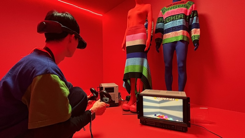 其中,跨界藝術家/設計師江奕勳透過虛擬實境遊戲《AC WORLD》,打造繽紛的虛幻城市,邀請觀眾進入遊戲,透過不斷的蒐集寶物獲得追蹤者與按讚數,反映當今虛擬社群平台的互動現象。然而,在這些由影像創造的絢爛表象下,我們究竟獲得了什麼?也值得進一步反思。