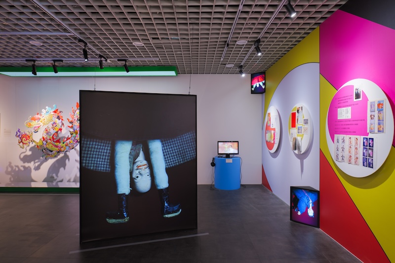 坐落於展場中心的紅色大頭娃娃,是飛人集社劇團的作品《偶是誰》,該作品靈感來自金光布袋戲偶頭,並邀請觀眾把頭伸入作品內,以「偶的視角」觀看外在環境。透過人/偶角色互換的方式,使觀眾重新審視兩者間的微妙連結與差異。