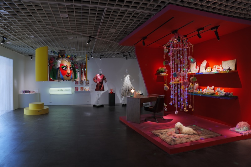 無獨有偶,陳穎蓁《情書》靈感來自館藏的日本傳統裝飾品「つるし飾り」,紅色房間內,藝術家重新詮釋象徵祝福的女兒節玩偶串飾,如同操偶說故事,將私密空間的擺設作爲表達情感的媒介,反映20歲前後找尋自我定位與情感歸屬的掙扎與和解。觀眾亦可使用書桌上的紙條,寫信給過去或未來的自己,形成專屬自我的對話儀式。