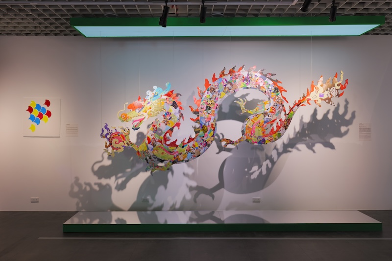 此外,周學涵《二十年的鄰居》邀請民眾參與「龍鱗片工作坊」,以「龍」為題一同創作「龍的鱗片」。工作坊使用館方過去的文宣品作為材料,以永續的方法探索對該館的想像與記憶。作品既呼應龍在偶戲中的重要地位,也透過層層堆疊與觀眾共同創作的鱗片設計,象徵偶戲館與地方長期建立的深厚情感。