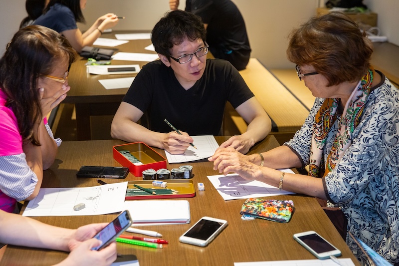 走到下一個空間,錄像藝術家崔廣宇以「再造一次夢」為題帶領工作坊。邀請參與者以「人人都有的手機」作為媒材,並透過分組自行構思主題與繪畫分鏡,將荒誕或超寫實的生活想像轉化為具象的影像作品。