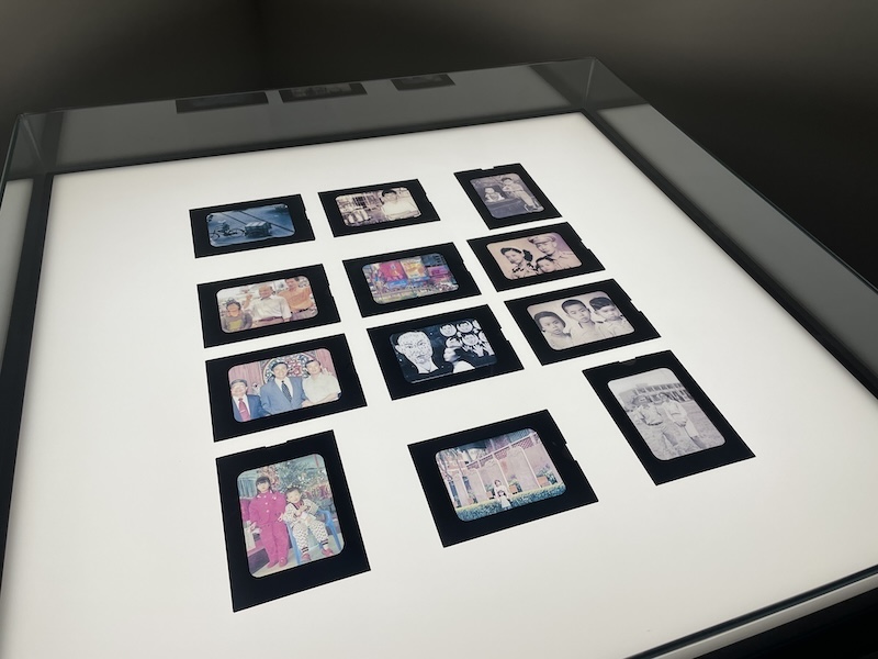 光桌上擺著「找回過去:卡牌遊戲工作坊」向參與民眾收集而來的老照片和典藏品幻燈片。(謝佳穎 攝影)