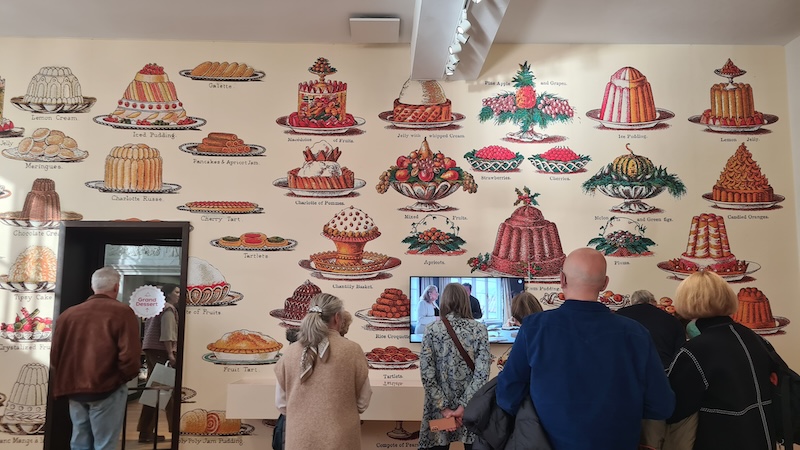 展覽策展人Jenny van der Heijden提及,這是一檔講述「甜點世界史」的展覽。然而,即使觀眾身陷在眾多的甜點模型與餐具展品之間,仍可隱約察覺該展是以荷蘭視角出發、西歐為核心的甜點文化史。例如,以荷蘭經典樸實的甜點Vla【註釋1】做為定錨甜點發展的起點,說明17-18世紀的荷蘭廣受法式甜點的影響,逐漸發展出具代表性的荷式甜點,如荷蘭煎餅、蘋果派、Tompouce【註釋2】等等。