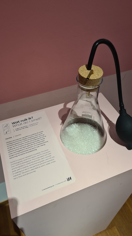 有趣的是,展覽將甜點製作過程所產生的各種特殊氣味,轉化為可供觀眾聞嗅體驗的互動裝置。這些氣味依主題設置在不同展間裡,使其氣味與同類別的展示品相互呼應,如以氣味濃烈的老起司作為開場,或以帶著杏桃香味的薩赫蛋糕(Sachertorte)使「巧克力」展間傳來陣陣獨特芬芳等,為觀眾創造出更具沉浸感的感官體驗。