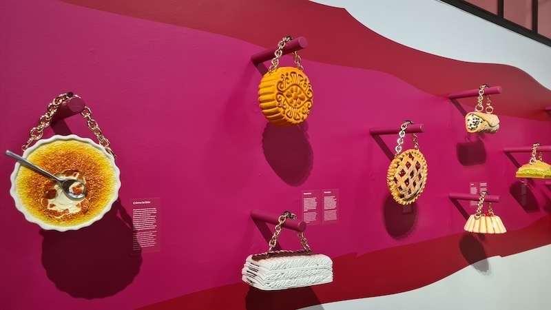 展覽入口,懸掛以各國經典甜點為造型的雕塑。(王幸慈 攝影)