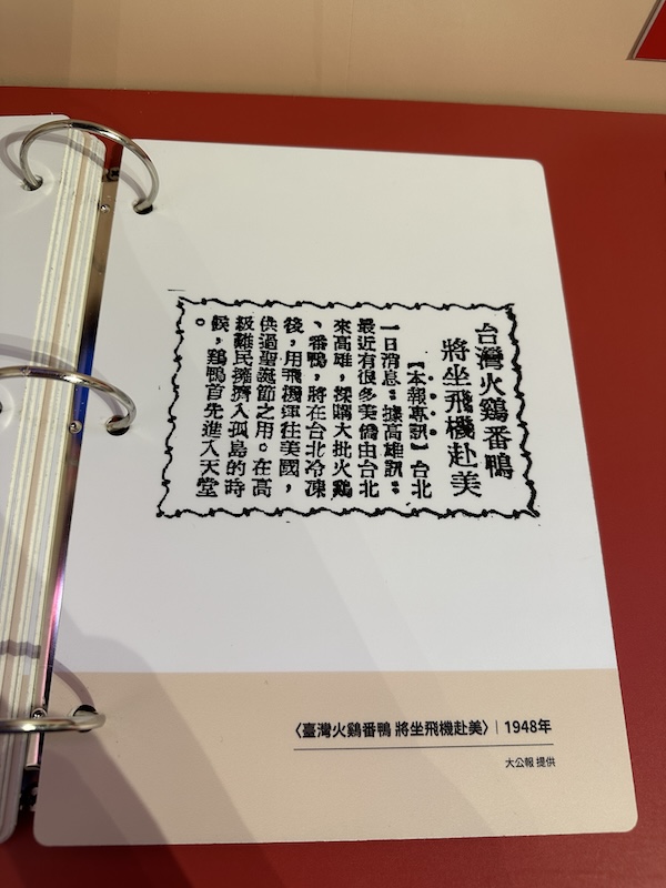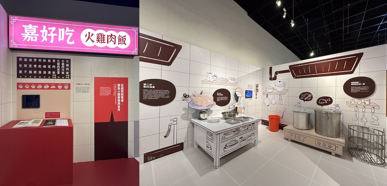 此外,展覽透過多元的文獻檔案和影音裝置回顧了「火雞肉飯」的誕生故事。例如,蔣經國總統勤於走訪,使得餐廳的曝光度大幅提升,成為媒體報導的焦點,讓「火雞肉飯」逐漸成為「嘉義」的必吃美食。隨著名人效應與輿論的推動,便逐步奠定了「嘉義火雞肉飯」在大眾記憶中的一席之地;而店家因應火雞肉特質的差異化製作,則讓每一家口味獨一無二。
