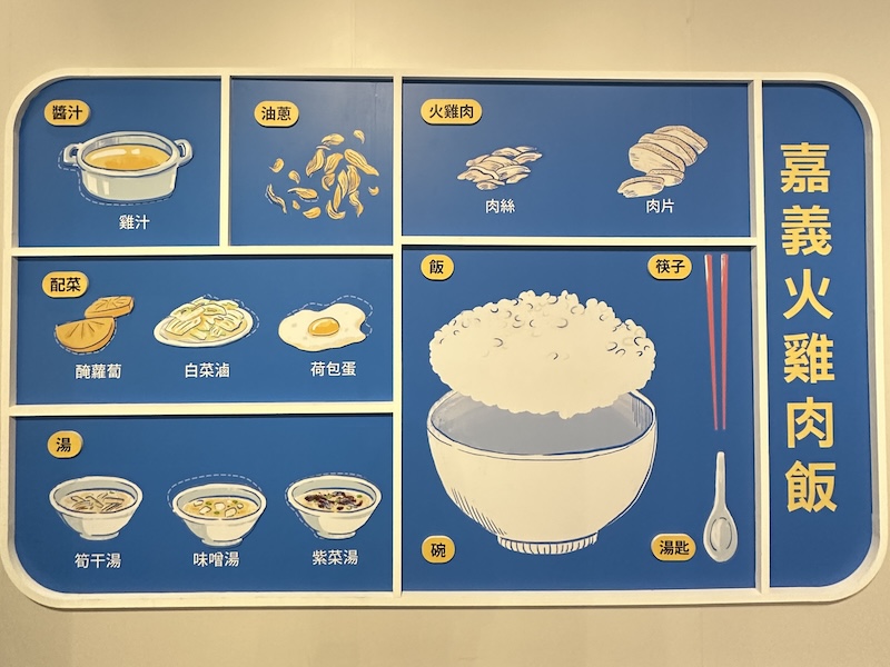 為了取悅客群,每家店都有各自的獨門配方,呈現出豐富多樣的組合與差異。展覽藉由插圖解構火雞肉飯的核心元素「飯、肉、配料」,帶領觀眾認識「火雞肉飯」如何形成一門學問,如紅、白肉的區別【註釋1】 、配料的油蔥煉製等。