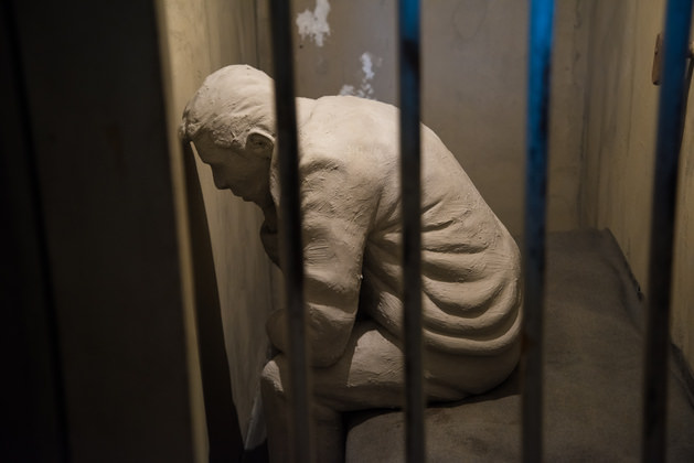 抽屜牢房中的受難者雕像。(阿爾朱比抵抗與自由博物館 提供)