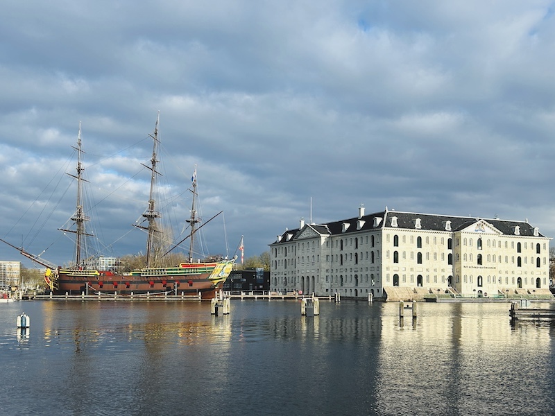 在荷蘭國家海事博物館北岸碼頭上,停泊著氣派滂薄的荷蘭東印度公司「阿姆斯特丹號」(VOC Ship Amsterdam)複製船,它曾為該國黃金時代爭霸世界的輝煌象徵。然而,在近年的解殖民的語境之下,海事博物館該以何種姿態面對過去掠奪而來的輝煌?又如何以多元的視角建構海洋與人的關係?