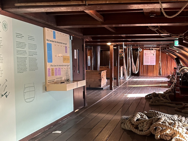 船上隨風飄揚的旗幟是航海時代,辨別敵我、展現權力最直接的方式。自1990年代重新復刻阿姆斯特丹號後,船上仍掛著荷蘭東印度公司旗。然而,這面旗幟代表荷蘭航海的風光歷史,同時也是殖民歷史的見證。